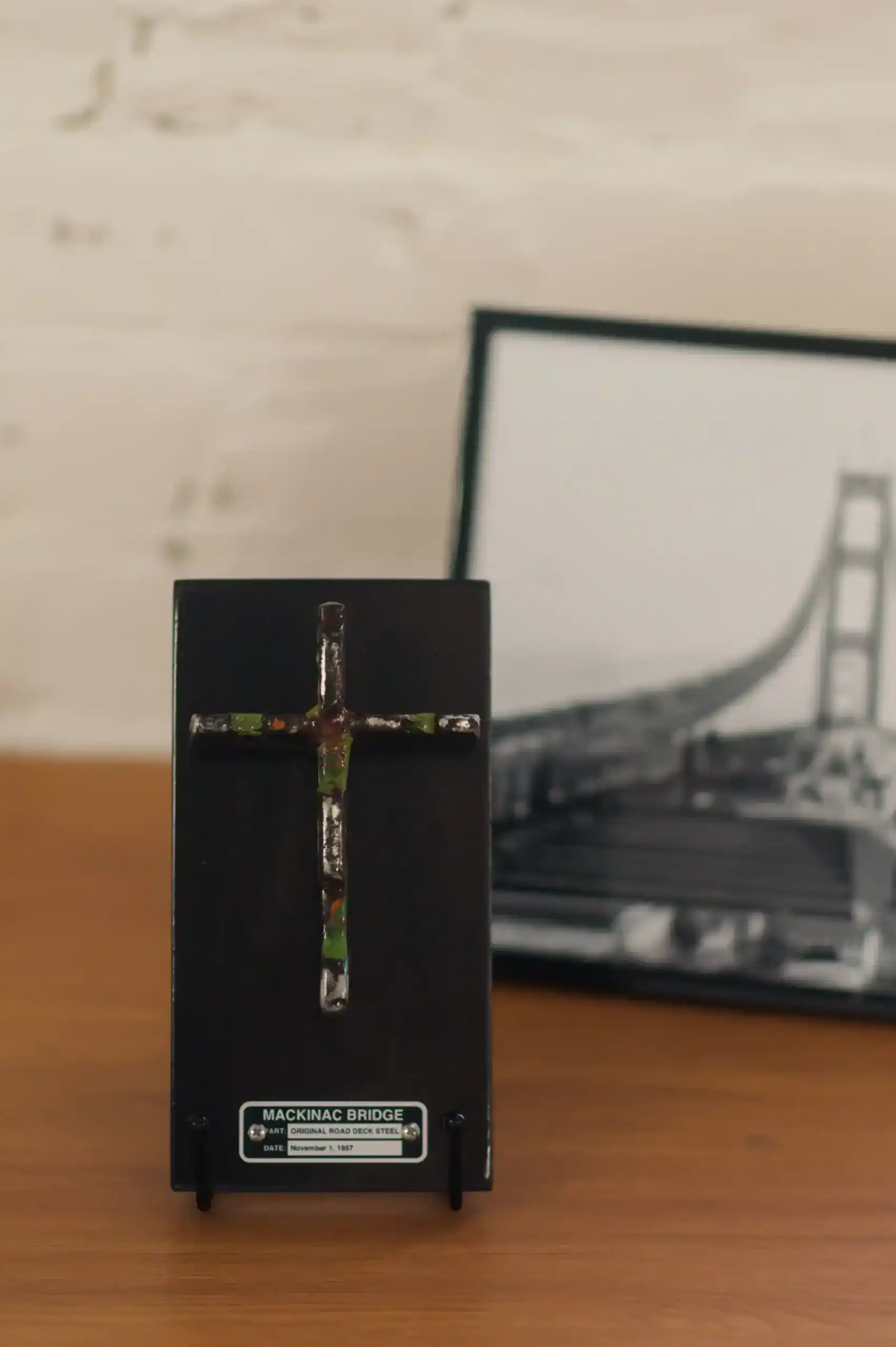 Handcrafted Cross Art in 1957 Mackinac Bridge Steel